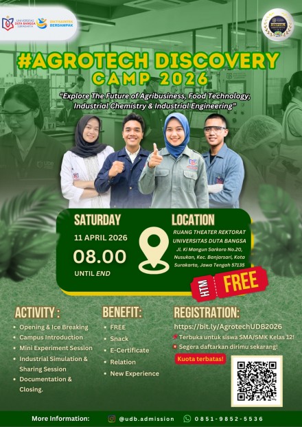 Kegiatan ini terbuka untuk seluruh siswa kelas XII yang ingin mengenal lebih dekat dunia perkuliahan serta prospek karier di bidang sains dan teknologi. Mari bergabung dan temukan masa depanmu bersama Fakultas Sains dan Teknologi!