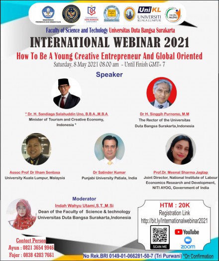 Moderator : Indah Wahyu Utami, S.T., M.Si (Dean of The Faculty of Science & Technology Universitas Duta Bangsa Surakarta, Indonesia)