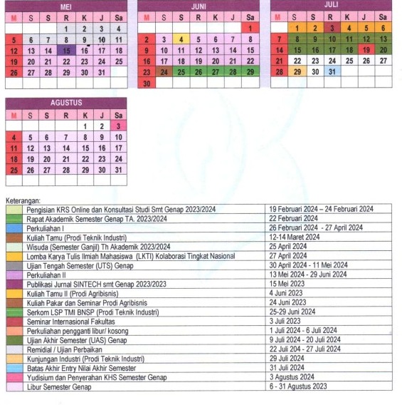 Kalender Akademik Semester Genap Fakultas Sains dan Teknologi