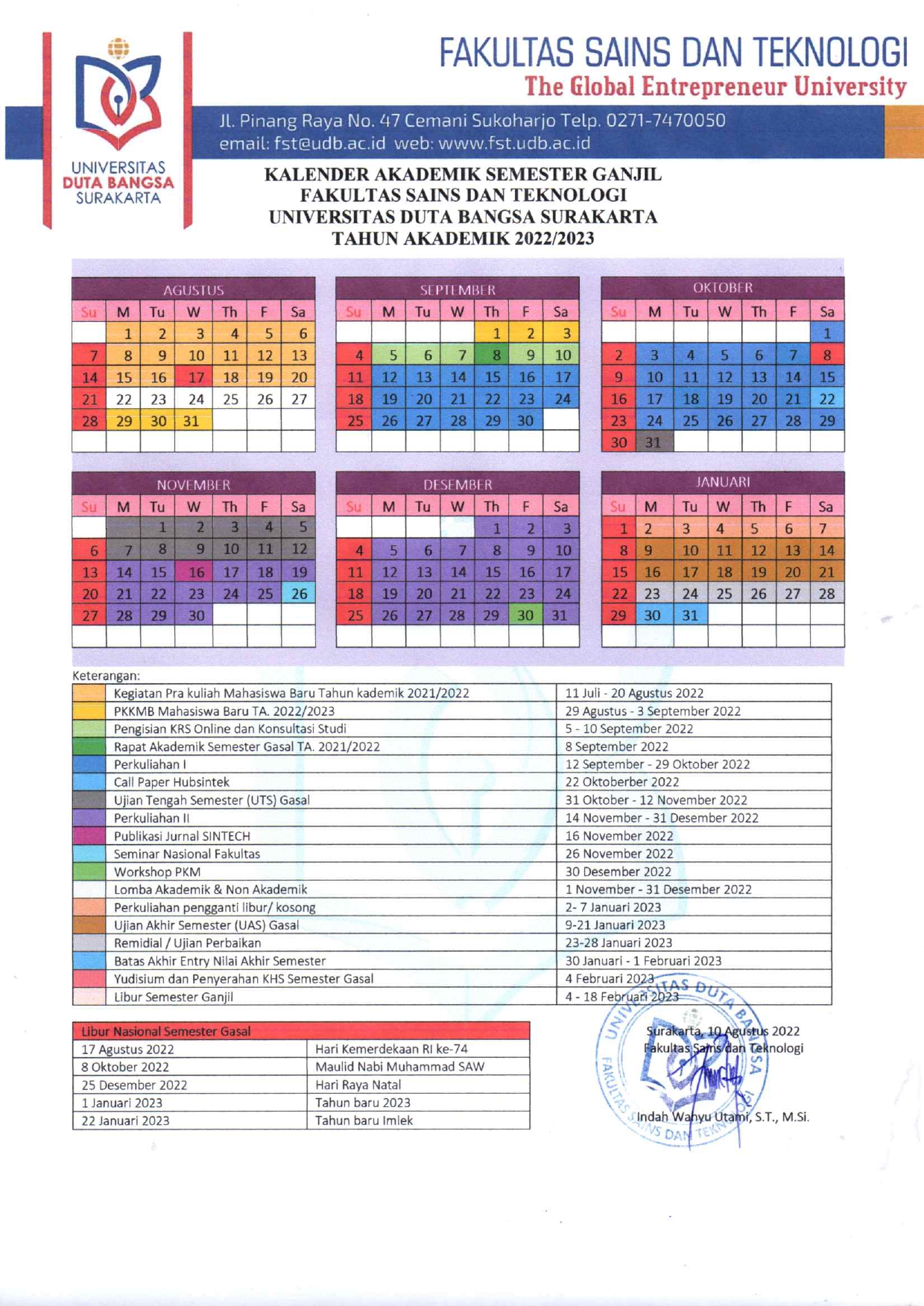 Kalender Akademik Semester Ganjil Fakultas Sains dan Teknologi