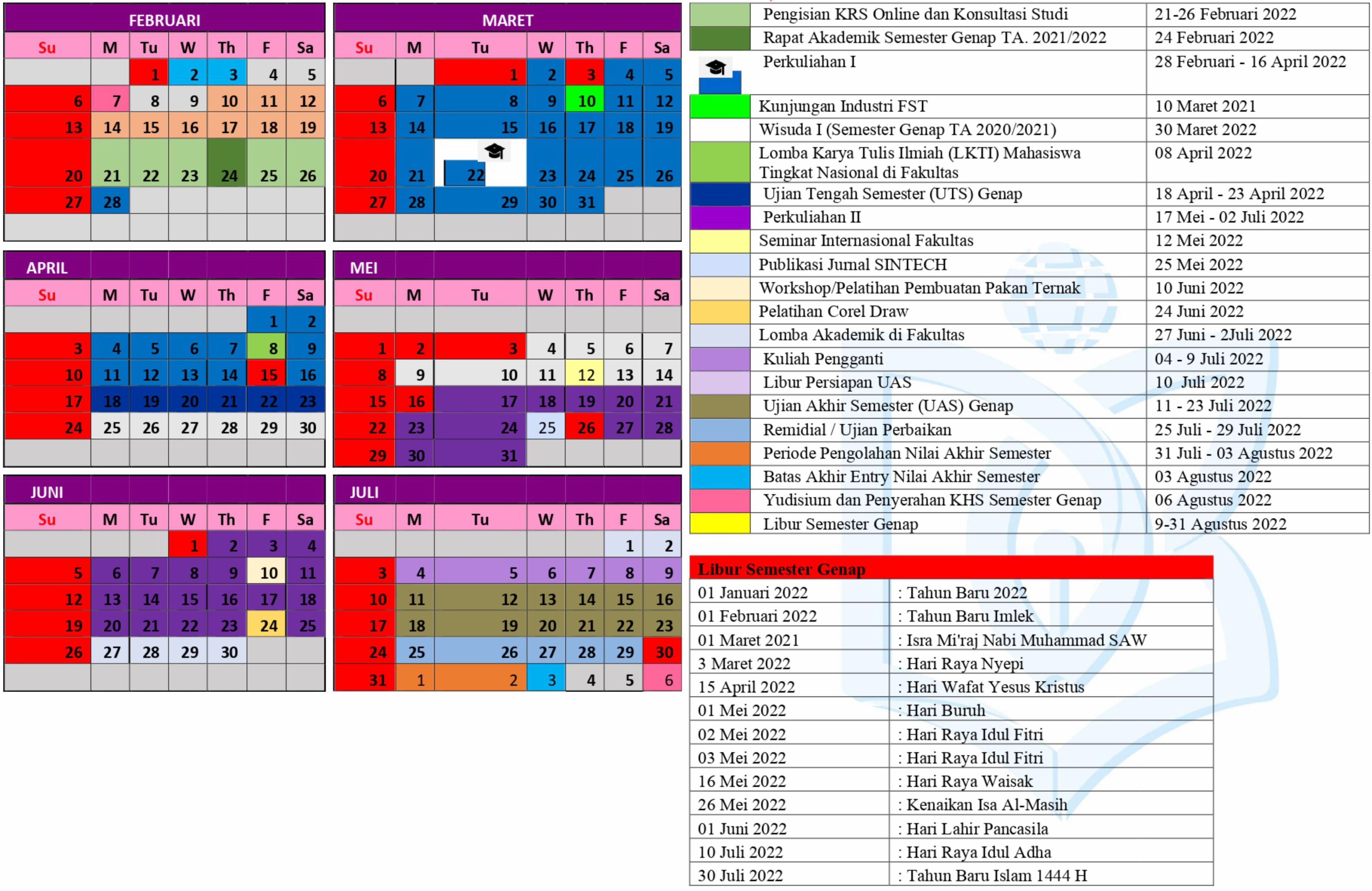 Kalender Akademik Semester Genap Fakultas Sains dan Teknologi
