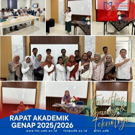 Fakultas Sains dan Teknologi (FST) Universitas Duta Bangsa Surakarta (UDB) menyelenggarakan Rapat Akademik Semester Genap Tahun Ajaran 2025/2026 pada Kamis, 26 Februari 2026 bertempat di Kampus Rektorat UDB.